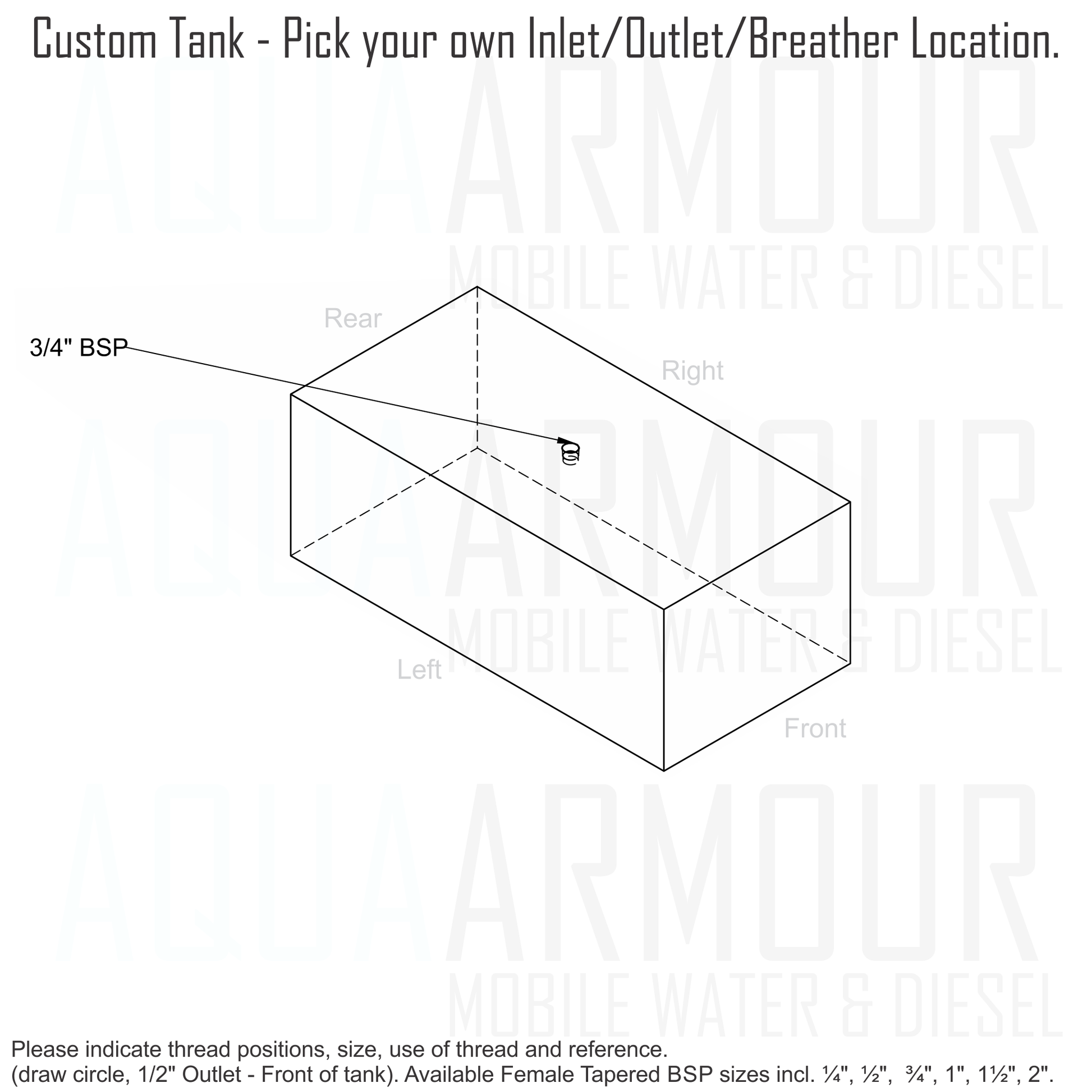 Designing your own drill pattern layout with our “Custom - pick your own option”? Print the blank template photo, add your Inlet/Outlet/Breather locations and sizes (up to four thread to barb fittings included, up to one inch) and email your drawing to sales@aquaarmourmobile.com
